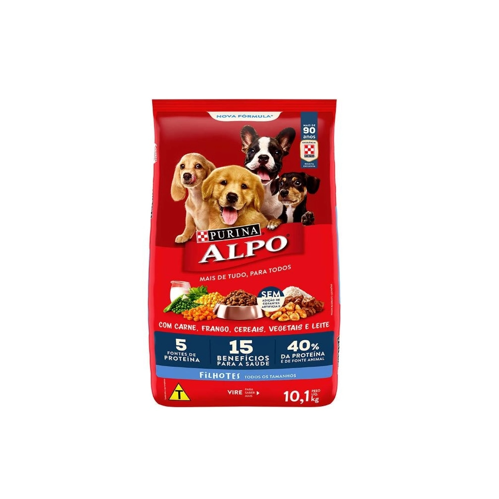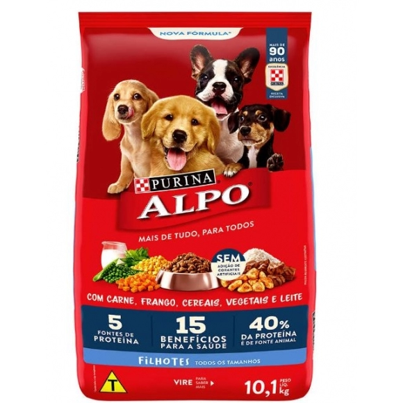 PURINA ALPO é um alimento delicioso, oferecendo tudo o que seu cão precisa: 5 fontes de proteína e a quantidade ideal para o seu desenvolvimento.