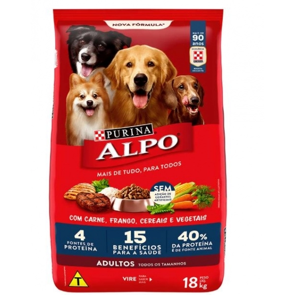 A Purina Alpo foi desenvolvida para oferecer mais sabor e nutrição aos cães adultos de todos os portes. Com uma combinação irresistível de carne, frango, cereais e vegetais, essa ração proporciona energia, saúde e vitalidade para o dia a dia do seu pet.