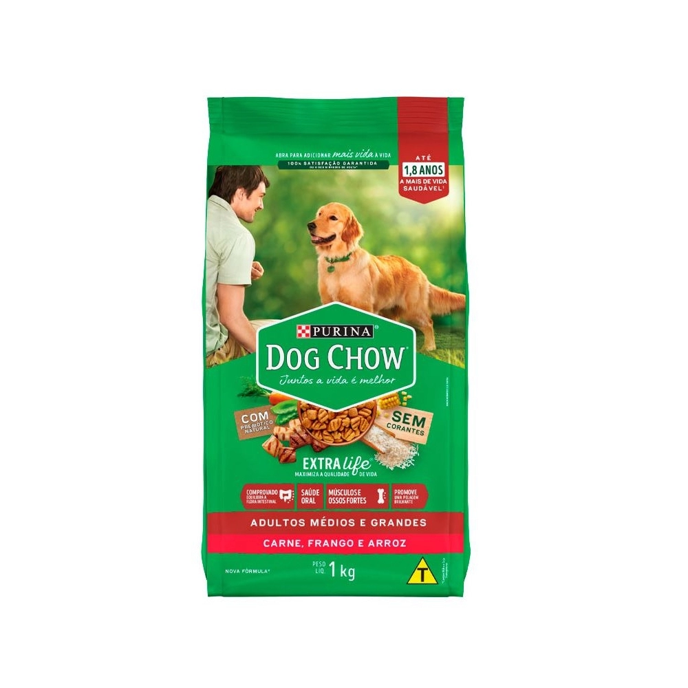 A Purina Dog Chow Adultos de Porte Médio e Grande é uma ração seca completa e balanceada, desenvolvida para atender às necessidades nutricionais de cães adultos de portes médio e grande.