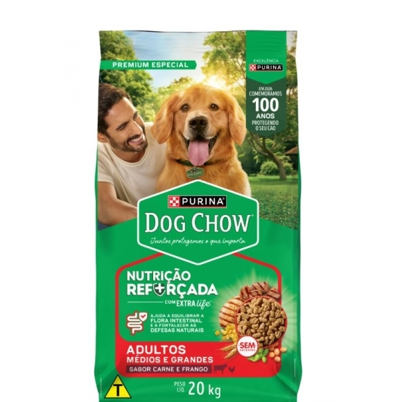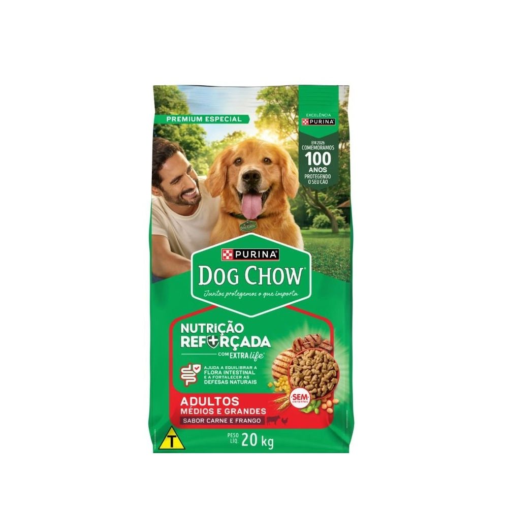 DOG CHOW® Adultos Médios e Grandes – Sabor Carne & Frango – 20 kg