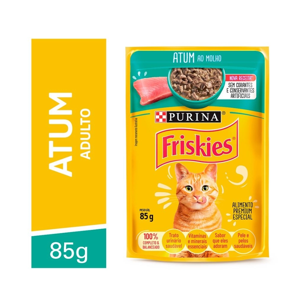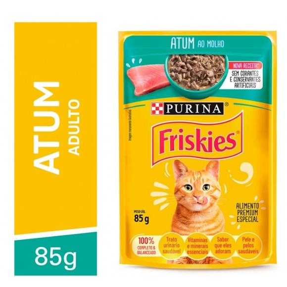 O Friskies Atum ao Molho é uma refeição saborosa e nutritiva, preparada com pedaços macios de atum envoltos em um molho irresistível. Ideal para agradar o paladar exigente dos gatos, une sabor e textura que estimulam o apetite.