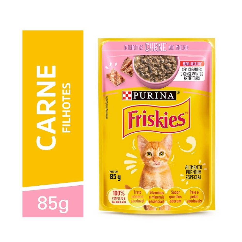 O Friskies Filhotes Carne ao Molho foi desenvolvido especialmente para atender às necessidades nutricionais dos gatinhos em fase de crescimento. Com pedaços macios de carne em um molho irresistível, proporciona uma refeição deliciosa e fácil de mastigar.