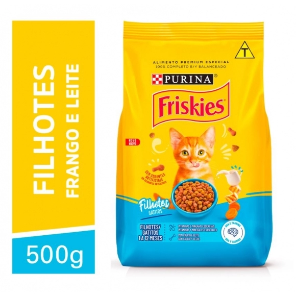 A Purina Friskies Filhotes Frango, Leite e Cenoura foi desenvolvida especialmente para atender às necessidades nutricionais dos gatos em fase de crescimento.