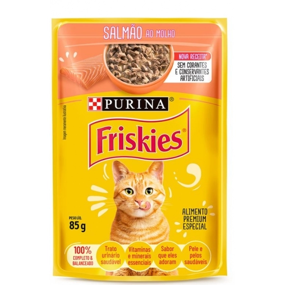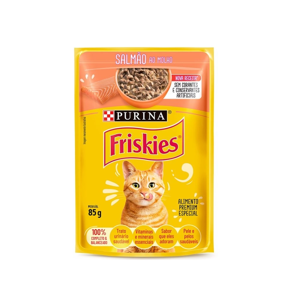 Friskies Ração Úmida Sachê para Gatos Adultos – Sabor Salmão ao Molho 85 g (Caixa com 15 Sachês)