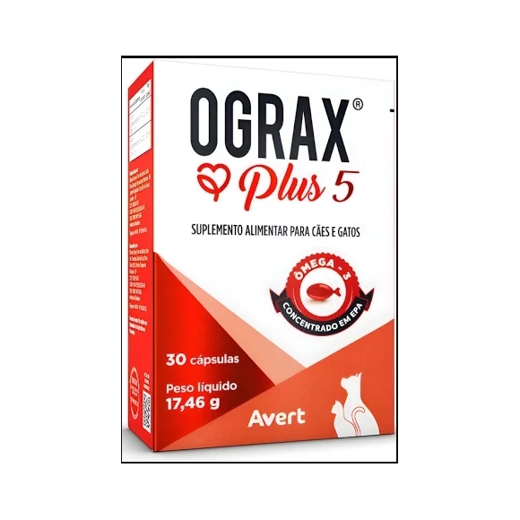 Ograx Plus 5: Suplemento nutricional avançado, desenvolvido para promover a saúde e o bem-estar dos pets, com benefícios comprovados para a pele, pelagem, articulações e sistema cardiovascular, proporcionando mais qualidade de vida e vitalidade.