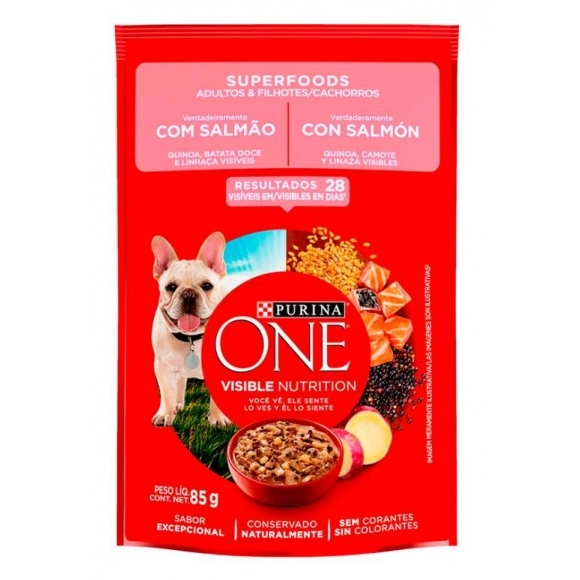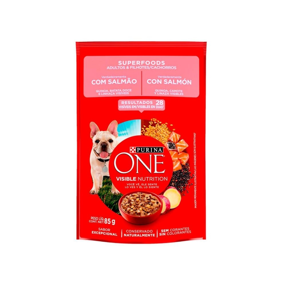 Ração Úmida Purina ONE para Cães – Sabor Salmão 85 g (Caixa com 15 Sachês)
