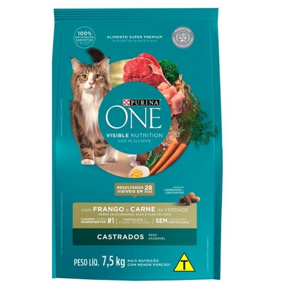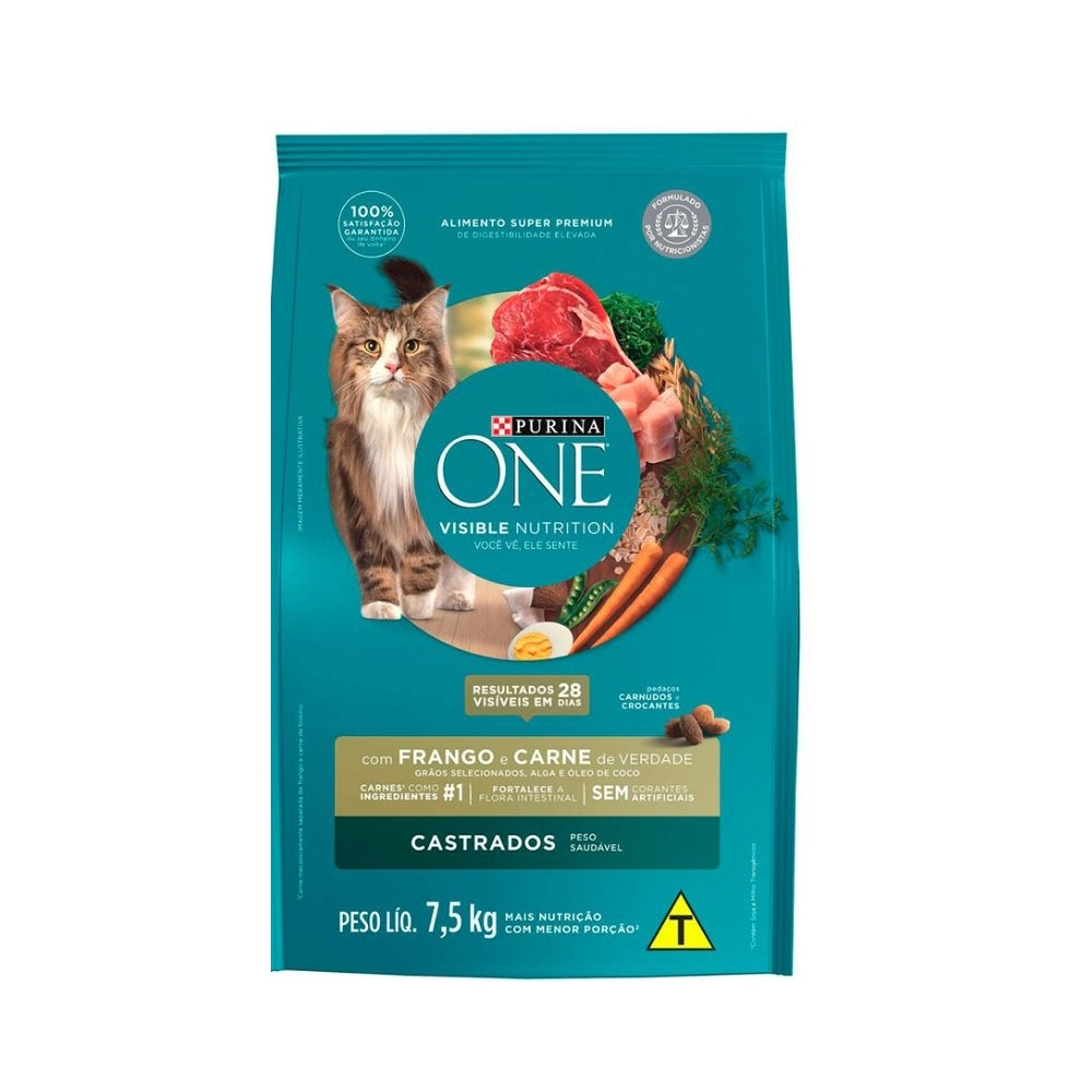 A Ração Purina ONE Frango e Carne para Gatos Castrados foi especialmente desenvolvida para atender às necessidades nutricionais dos felinos que passaram pela castração. Sua fórmula equilibrada ajuda a controlar o peso, manter a saúde do trato urinário e fornecer todos os nutrientes essenciais para gatos adultos.