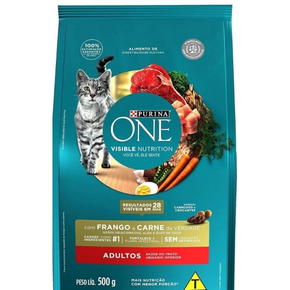 Ração Purina ONE Gatos Adultos – Frango & Carne (500 g)