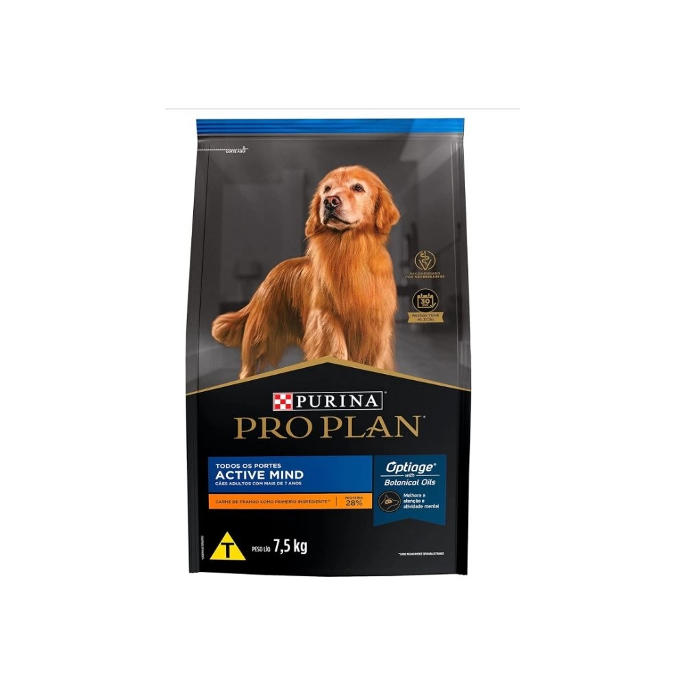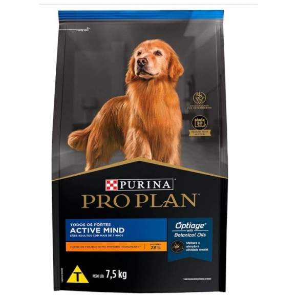 A Purina Pro Plan Active Mind Cães Adultos 7,5kg foi desenvolvida especialmente para cães de porte médio e grande a partir dos 7 anos de idade, oferecendo uma nutrição avançada que ajuda a manter o cérebro ativo e a vitalidade por mais tempo.