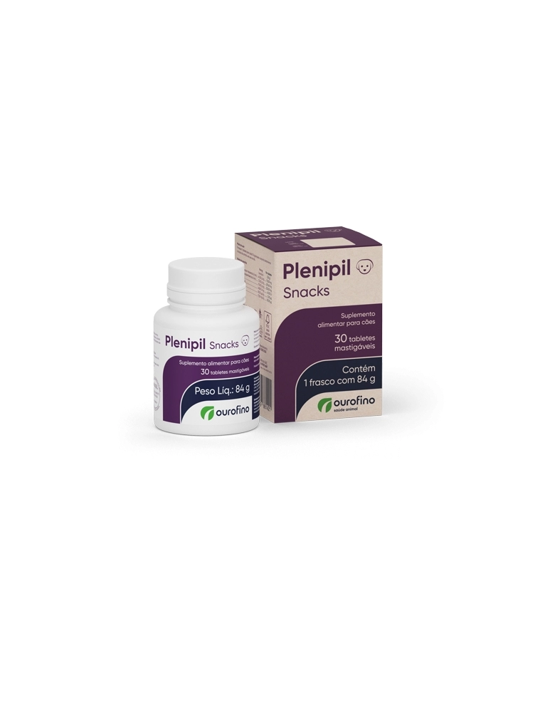 Plenipil Snacks é um suplemento alimentar em forma de tablete mastigável altamente palatável formulado com Ômega 3 (EPA e DHA) associado a Vitamina A, Biotina e Selênio os quais atuam na derme e pelos de cães. Auxilia no fortalecimento e manutenção da estrutura e função da pele e pelos dos animais de todas as idades e fases da vida que necessitem do aporte desses nutrientes.